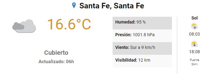 El SMN pronostica para hoy martes 23 de junio para la ciudad de Santa Fe