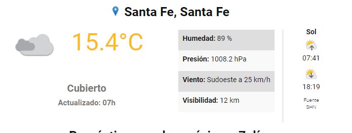 El SMN pronostica para hoy viernes 10 de mayo para la ciudad de Santa Fe Comenta sobre esta publicación Navegación de entradas Escándalo en Electrolux: la UOM mintió vilmente Farmacias de turno: viernes 10 de mayo