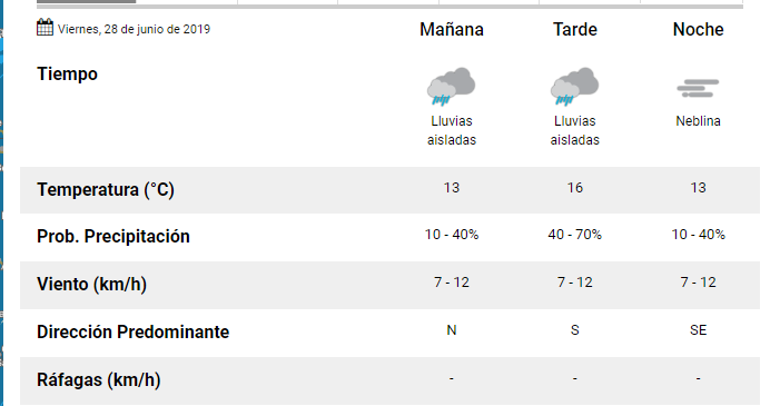 El Servicio Meteorológico Nacional pronostica para hoy viernes 28 de junio para la ciudad de Santa Fe:
