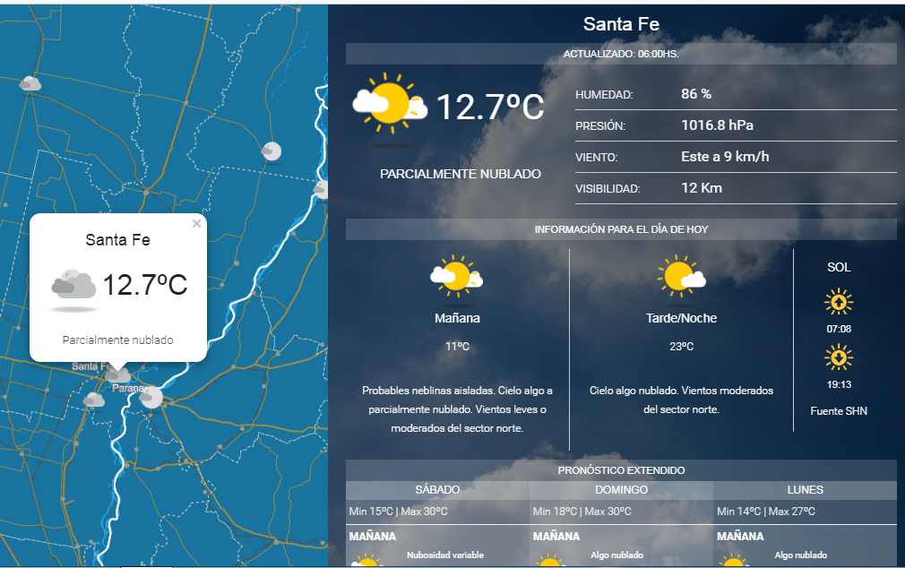Probables neblinas aisladas. Cielo algo a parcialmente nublado. Vientos leves o moderados del sector norte. Temperatura mínima de 11ºC