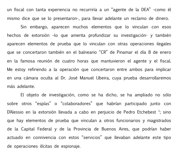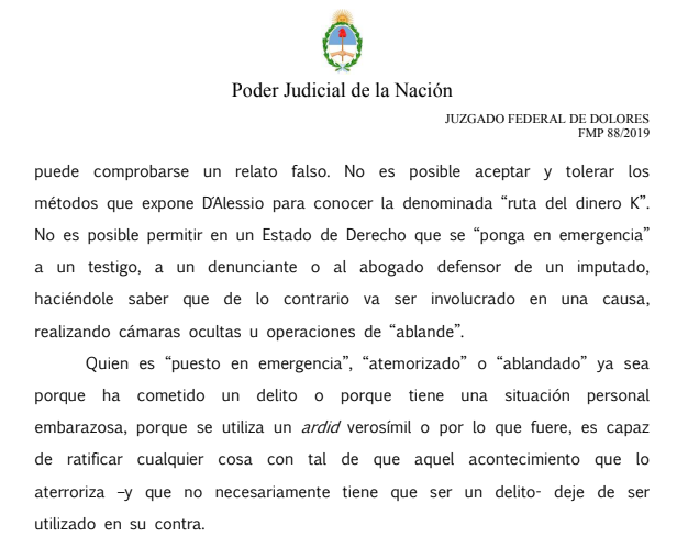 En un extenso fallo, de más de 200 hojas, Ramos Padilla consideró que hay elementos para atribuirle aD’Alessio, maniobras de “ablande” como “cámaras ocultas” y “carpetazos” que tenían influencia en causas judiciales. También utilizaba esas mismas maniobras para extorsionar a empresarios, comoel caso de Pedro Etchebest, quien lo denunció en la Justicia y destapó el escándalo.
