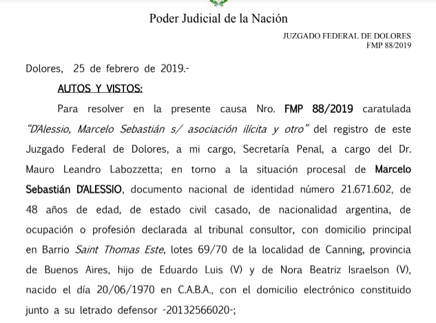 Por eso, el juez dolorense procesó y dictó preventiva contra el falso abogado, a quien impuso un embargo de 10 mil millones de pesos. Pero hizo más: le pidió al Procurador General de la Nación, jefe de todos los fiscales federales, que investigue los lazos entre D’Alessio y el fiscal Carlos Stornelli.
