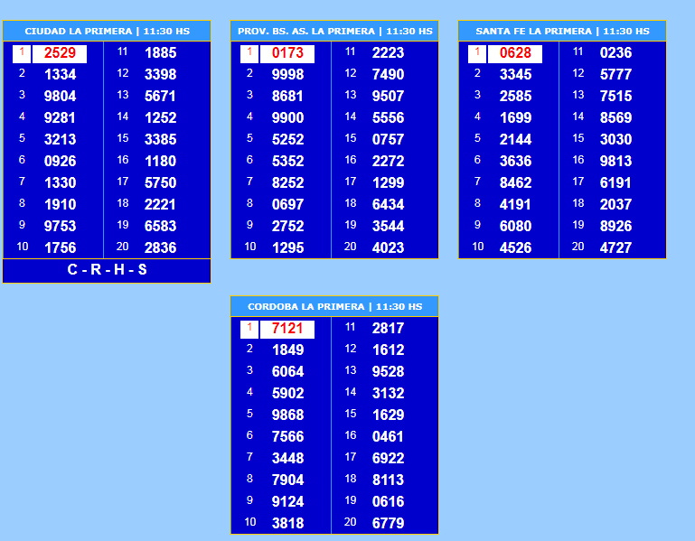 Todas las quinielas del jueves de 4 abril La Primera Matutino Vespertino y Nocturno Comenta sobre esta publicación Navegación de entradas Femicidio en Posadas: hallan degollada a una joven obereña Tomar mate cuesta cada vez más, $160 el kilo
