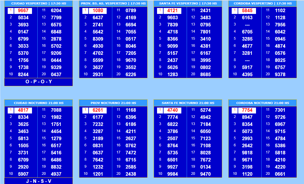 Todas las quinielas del lunes 1 de abril