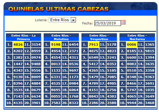 Todas las Quinielas del lunes 25 de marzo Ciudad Provincia Santa Fe Montevideo Córdoba Entre Ríos Santiago Comenta sobre esta publicación Navegación de entradas Farmacias de turno: martes 26 de marzo Con alto acatamiento, se realiza la primera jornada de paro en toda la provincia