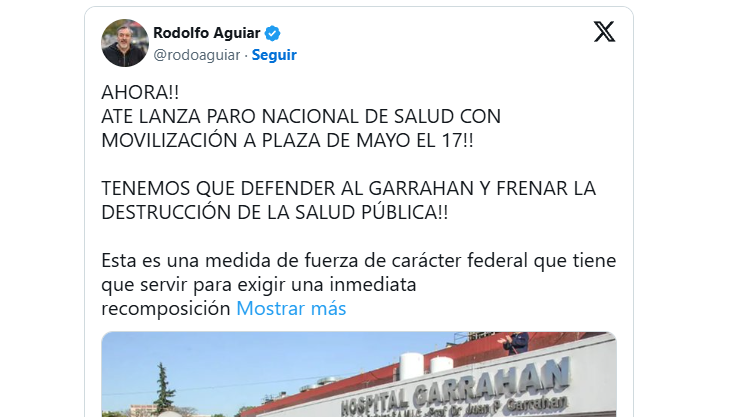“El Gobierno Nacional, encabezado por (Javier) Milei y (Mario) Lugones, insiste, junto al Consejo de Administración, en dilatar el conflicto, no hacer ninguna propuesta de aumento salarial y apostar al desgaste y al cansancio. Sin embargo, el resultado es el contrario: el equipo de salud está cada vez más cohesionado y el apoyo social no deja de amplificarse”, indicó.