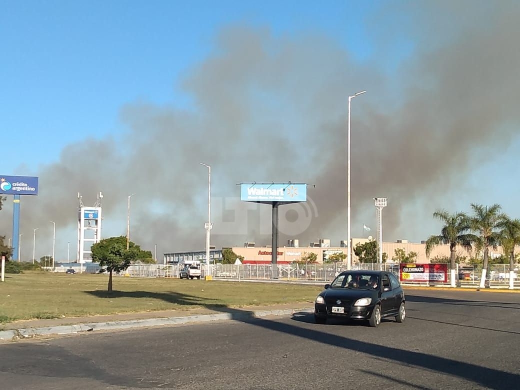La quema de pastizales está ocasionando no solo complicaciones en el tránsito sino genera preocupación en los vecinos. Bomberos trabajaron durante toda la jornada detrás del hipermercado porque las llamas se reavivan.