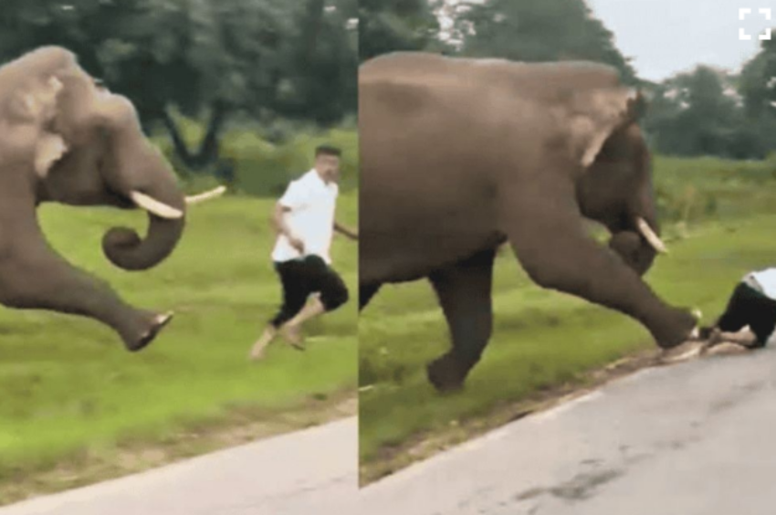 Un hombre sobrevivió después de ser atacado por un elefante en el suroeste de la India cuando intentó tomarse una foto con el animal y todo quedó grabado en video.