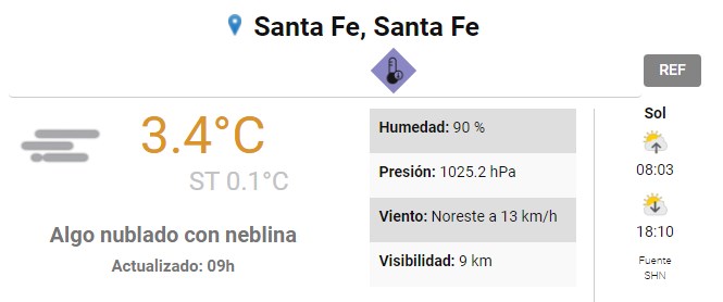 El SMN pronostica para hoy Miércoles 30 de junio para la ciudad de Santa Fe