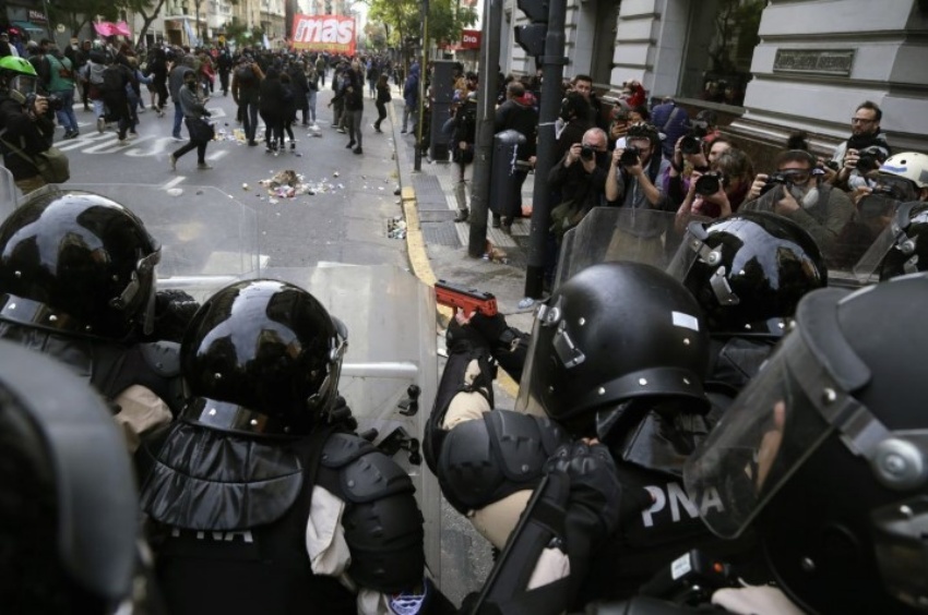 Este jueves temprano, la operación del oficialismo quedó al desnudo. El periodista del propio canal TN, Manuel Jove, publicó el video en donde se observa cómo una guardia pretoriana de la policía avanza y gasea a diferentes manifestantes y a la nena, que estaba sentada sobre el asfalto eludiendo la embestida.
