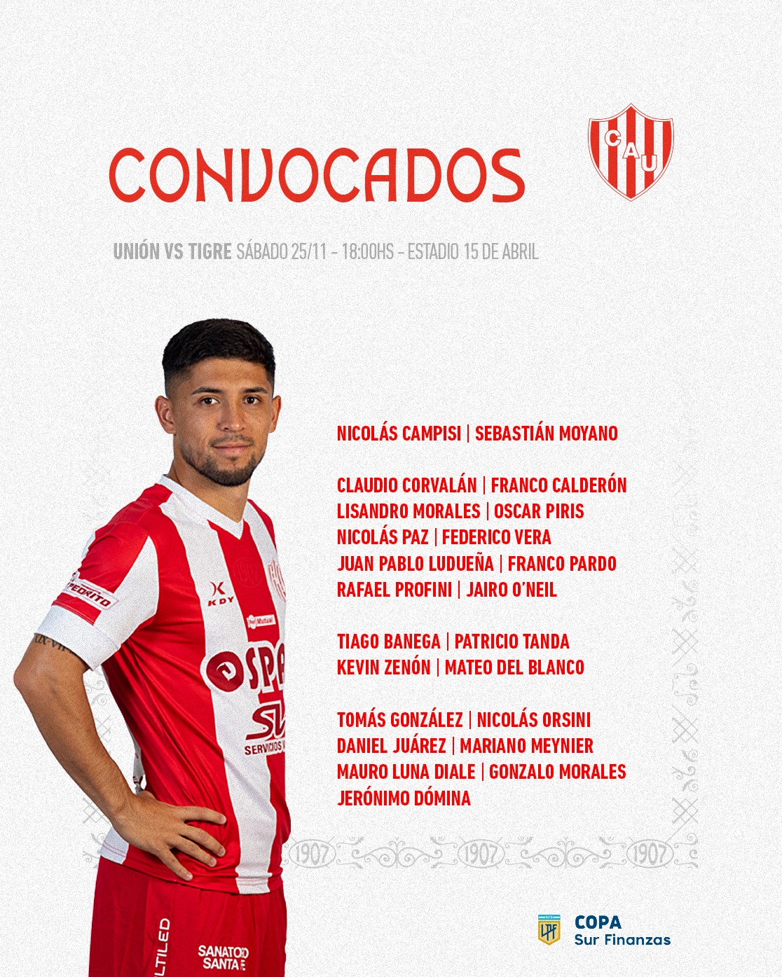 Unión trabajó por última vez este viernes y quedó concentrado para recibir a Tigre en el 15 de Abril. La lista de concentrados no tuvo mayores sorpresas.