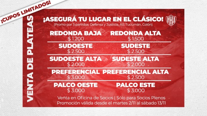 El club dio a conocer los detalles para los Tatengues que quieran asistir a los encuentros en el “15 de Abril”.
