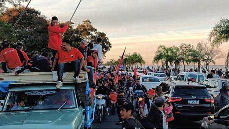 Festejos de los hinchas de Colón en la ciudad de Santa Fe