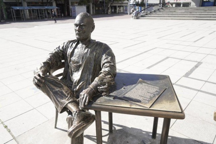 La estatua del Negro Fontanarrosa ubicada en la plaza Montenegro, en el microcentro de la ciudad de Rosario, fue vandalizada durante este lunes por la madrugada.