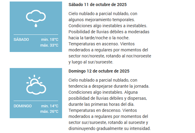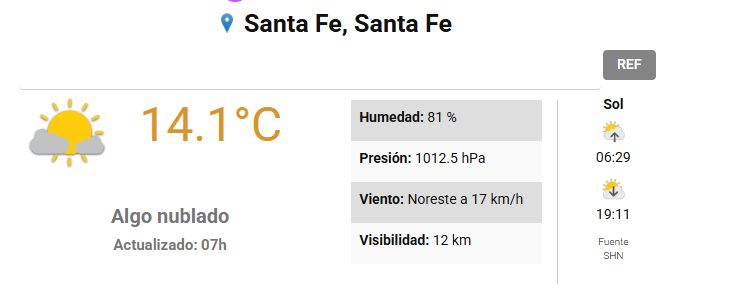 El SMN pronostica para hoy viernes 10 de octubre 2025 en la ciudad de Santa Fe de la Vera Cruz capital de la provincia de Santa Fe República Argentina.