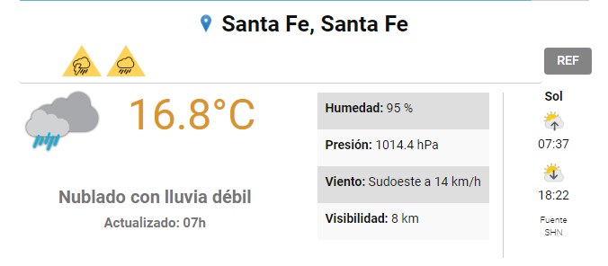 El SMN pronostica para hoy viernes 5 de mayo 2023 para la ciudad de Santa Fe