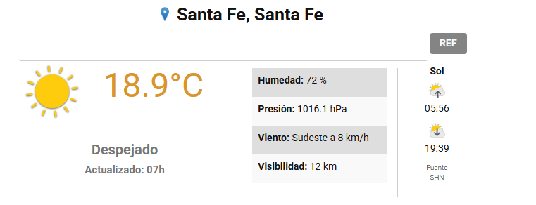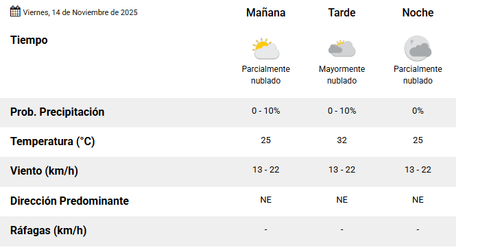 En tanto que el Centro de Informaciones Meteorológicas de la FICH para hoy viernes 14 de noviembre 2025 en la ciudad de Santa Fe de la Vera Cruz capital de la provincia de Santa Fe República Argentina.