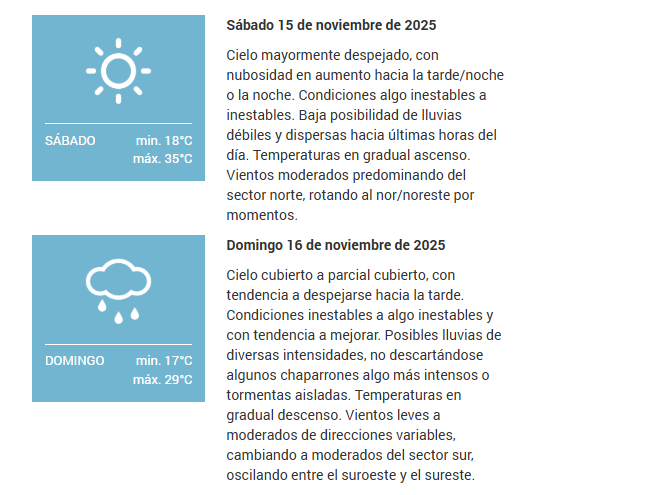 El SMN pronostica para hoy viernes 14 de noviembre 2025 en la ciudad de Santa Fe de la Vera Cruz capital de la provincia de Santa Fe República Argentina.