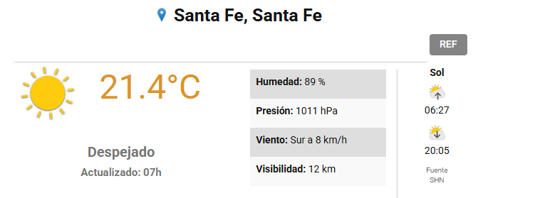 En tanto el Centro de Informaciones Meteorológicas de la FICH-UNL pronostica para hoy viernes 30 de enero 2026 en la ciudad de Santa Fe de la Vera Cruz capital de la provincia de Santa Fe República Argentina.