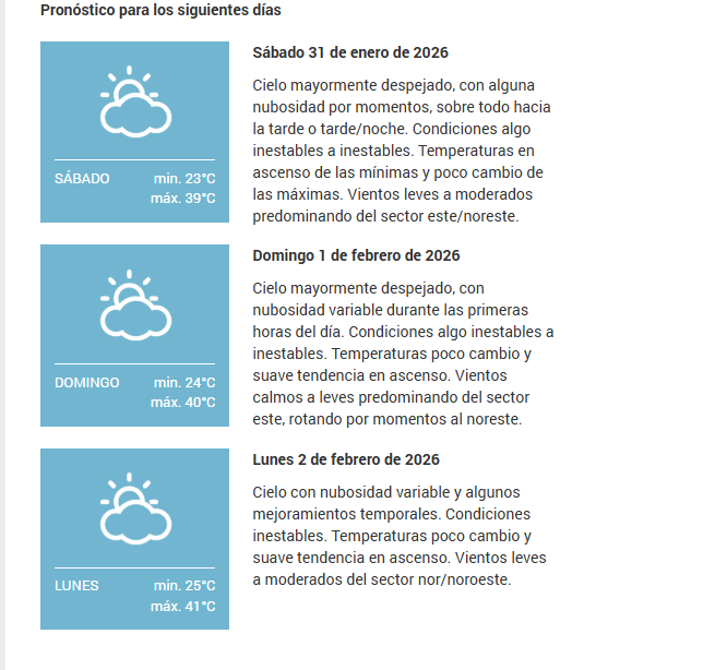 El SMN pronostica para hoy viernes 30 de enero 2026 en la ciudad de Santa Fe de la Vera Cruz capital de la provincia de Santa Fe República Argentina.